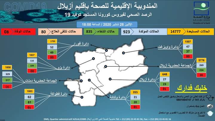 * ملخص الحالة الوبائية بالاقليم إلى حدود مساء يوم الإثثنين 28 شتنبر 2020 :