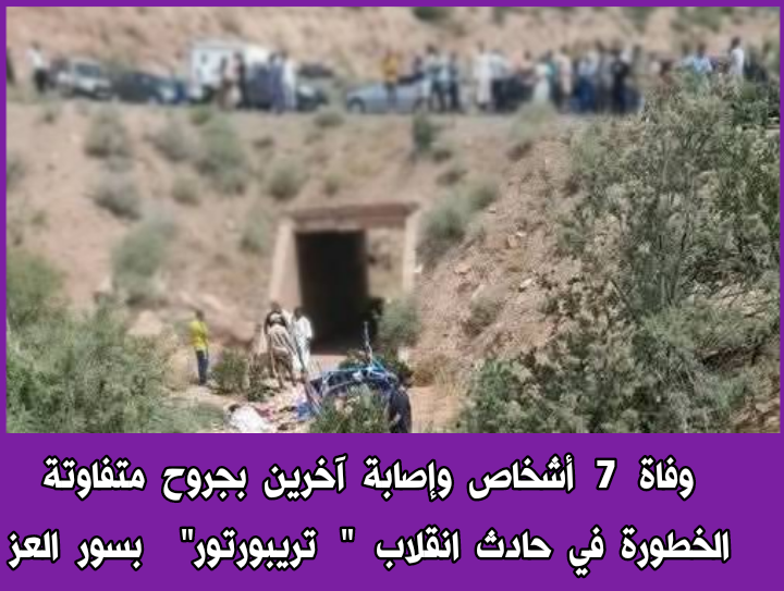 لقي سبعة أشخاص مصرعهم وأصيب آخرون بجروح متفاوتة الخطورة ، في حادث انقلاب دراجة ثلاثية العجلات " تريبورتور" صباح اليوم الأحد 8 يونيو على مستوى قنطرة بسور العز التابع لاقليم قاعة السراغنة ....