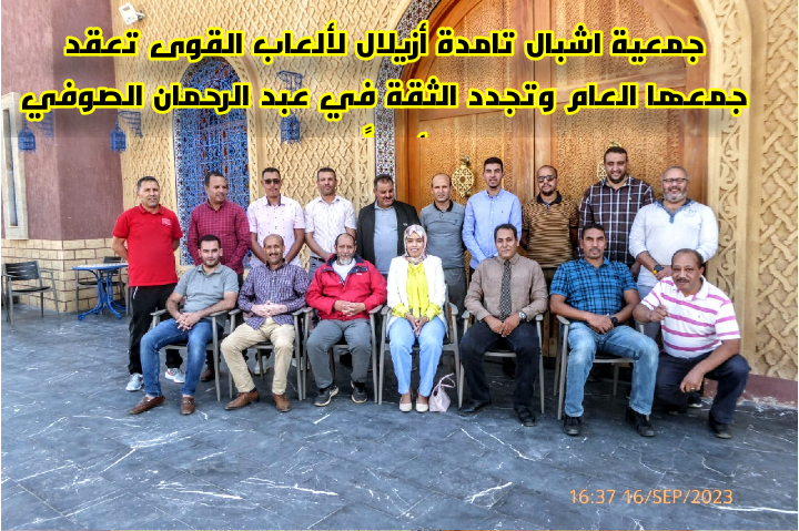 عقدت جمعية أشبال تامدة أزيلال لألعاب القوى ، زوال اليوم السبت 16 شتنبر 2023 ، بقاعة الحفلات "نجمة "، جمعها العام السنوي العادي ، لتجديد اعضاء المكتب المسير تم خلاله المصادقة على التقريرين الأدبي والمالي وتجديد الثقة في شخص السيد عبد الرحمان الصوفي رئيساً للجمعية للولاية الثانية ...