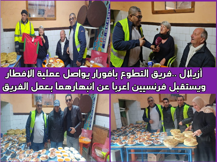 أزيلال ..فريق التطوع بافورار يواصل عملية الافطار ويستقبل فرنسيين اعربا عن انبهارهما بعمل الفريق
