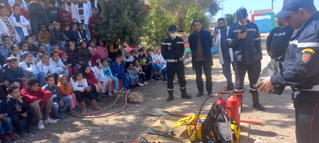 واستقبلت الاطر التربوية تلاميذ المؤسسة، أفراد الوقاية المدنية ، قدمت لهم مجموعة من الورشات التوعوية لتحسيسهم بأهمية ودور هذا الجهاز في تدبير الطوارئ والتخفيف من حدة وآثار الكوارث وإغاثة الأشخاص وإنقاذ الأرواح.
