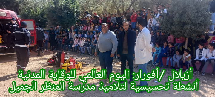 استفاد تلميذات وتلاميذ مدرسة المنظر الجميل افورار مديرية أزيلال ،من مجموعة من الأنشطة التوعوية التحسيسية بمناسبة الاحتفال باليوم العالمي للوقاية المدنية الذي يصادف فاتح مارس من كل سنة .