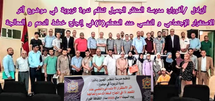 بدار الثقافة بأفورار ،نظمت مدرسة المنظر الجميل صبيحة اليوم السبت 21 ماي الجاري، بحضور رجال و نساء التعليم بالتعليم العمومي و الخصوصي و ممثلي السلطة المحلية و المجلس الجماعي و المكلفون بالدعم ببرنامج أوراش، لقاء يندرج في سياق مواصلة تنفيذ مقتضيات أحكام القانون الإطار 17_51 و لاسيما المواد 20و 33و 34 المتعلقة بتعزيز و توسيع شبكة الدعم التربوي .