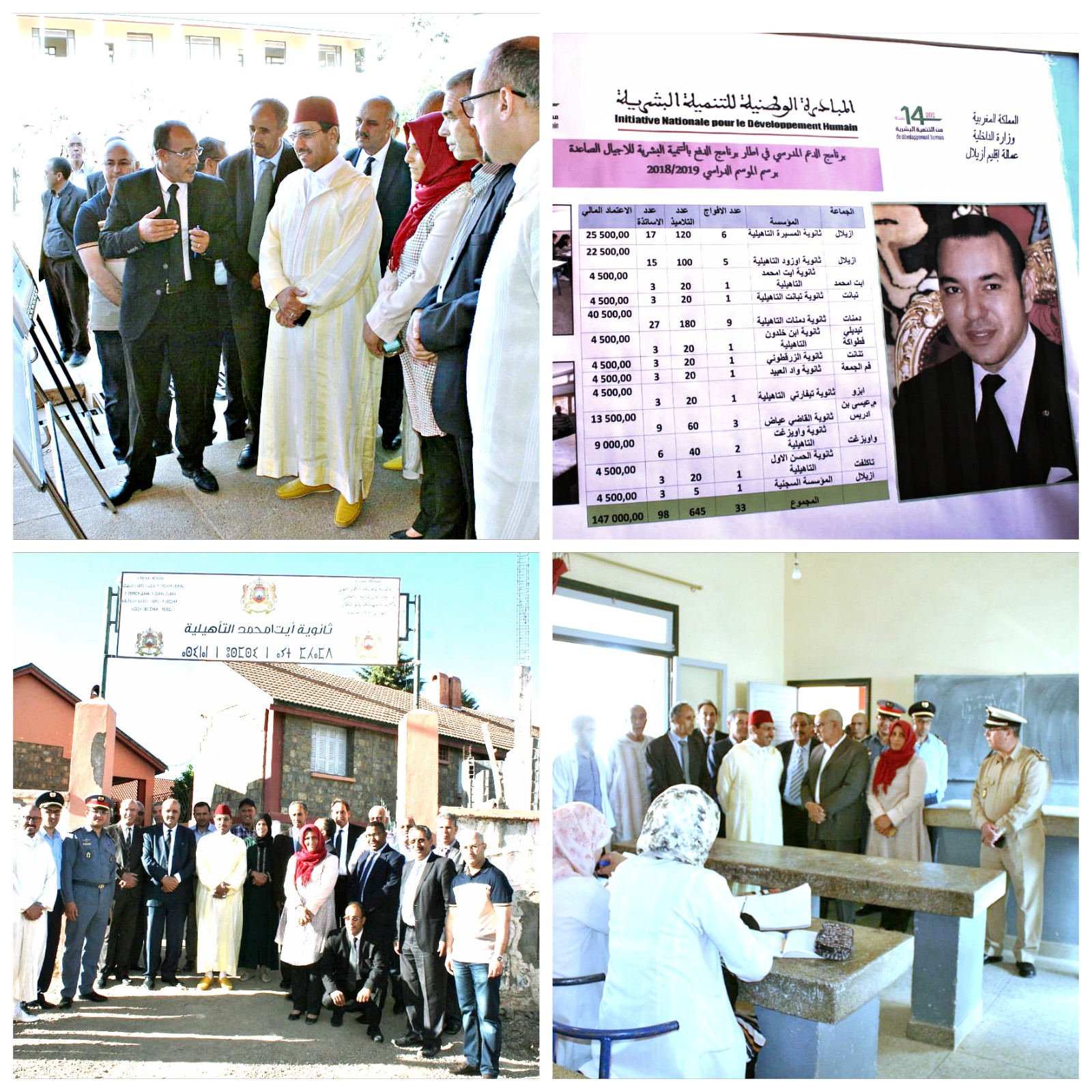 تخليدا للذكرى 14 لانطلاق المبادرة الوطنية للتنمية البشرية ،اشرف السيد محمد باري الكاتب العام لعمالة إقليم ازيلال مرفوقا برئيس المجلس الإقليمي ، رئيس قسم الشؤون الداخلية ، رئيس الديوان ، رؤساء المصالح الأمنية ، رؤساء المصالح الخارجية ، بعض أعضاء اللجنة الإقليمية مساء اليوم الجمعة 17 ماي 2019 ، بثانوية أيت امحمد التأهيلية بالجماعة الترابية ايت محمد، على اعطاء الانطلاقة الرسمية لبرنامج الدعم المدرسي في اطار برنامج الدفع بالتنمية البشرية للاجيال الصاعدة ، برسم الموسم الدراسي 2018/2019 ،وذلك بشراكة مع النسيج الجمعوي التنموي بازيلال والمديرية الاقليمية لوزارة التربية الوطنية .