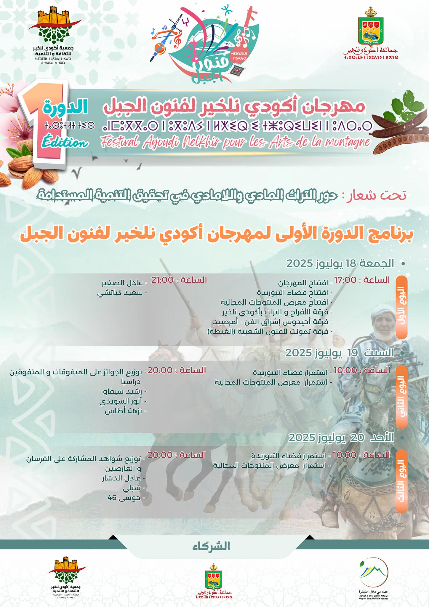 بشراكة مع جهة بني ملال خنيفرة والمجلس الجماعي اكودي نلخير بإقليم أزيلال ، تنظم جمعية أكودي نلخير للثقافة والتنمية ، النسخة الأولى من مهرجان اكودي نلخير لفنون الجبل في الفترة الممتدة ما بين 18 و 20 يوليوز 2025 ، وذلك تحت شعار " دور التراث المادي واللامادي في تحقيق التنمية المستدامة "