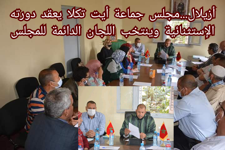 احتضنت قاعة الاجتماعات بمقر جماعة أيت تكلا بإقليم أزيلال ،صباح اليوم الاربعاء 13 أكتوبر الجاري، أشغال الدورة الإستثنائية للمجلس خصصت لانتخاب اللجان الدائمة للمجلس .