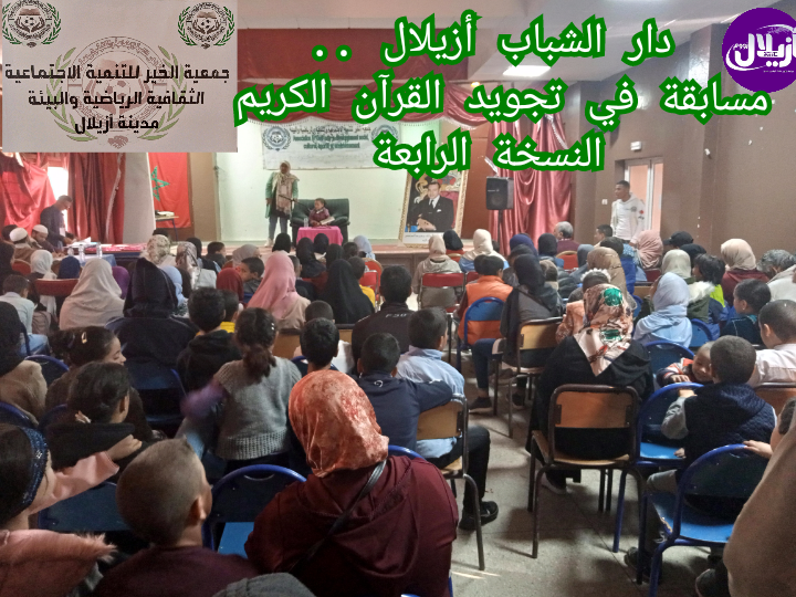 في إطار الإحتفال بذكرى المسيرة الخضراء المظفرة وعيد الاستقلال المجيد ، احتضنت قاعة العروض بدار الشباب الشهيد محمد الزرقطوني بأزيلال ، زوال اليوم السبت 13 نونبر 2021، إنطلاق مسابقة في تجويد القرآن الكريم في نسختها الرابعة ، من تنظيم جمعية الخير للتنمية الاجتماعية والرياضية والبيئة ، بشراكة مع المجلس العلمي المحلي لازيلال وبتنسيق مع السلطات المحلية وإدارة دار الشباب بأزيلال .