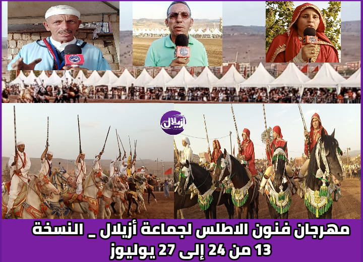 في حلة جديدة ووسط تنظيم محكم وحضور جماهيري منقطع النظير،استقبل فضاء التبوريدة التقليدية بالساحة المحادية لمدرسة بئرنزاران بمدينة أزيلال، 49 فرقة للتبوريدة التقليدية القادمة من مختلف جماعات الإقليم وخارجه ، منها فرقة نسائية من جمعية فارسات المستقبل بمدينة مراكش في مشاركتها الأولى كضيف شرف في النسخة ال13 من مهرجان الاطلس لجماعة أزيلال ،المنظم من 24 الى 27 يوليوز تحت شعار "التراث اللامادي دعامة أساسية للسياحة الجبلية والاقتصاد المجالي ".