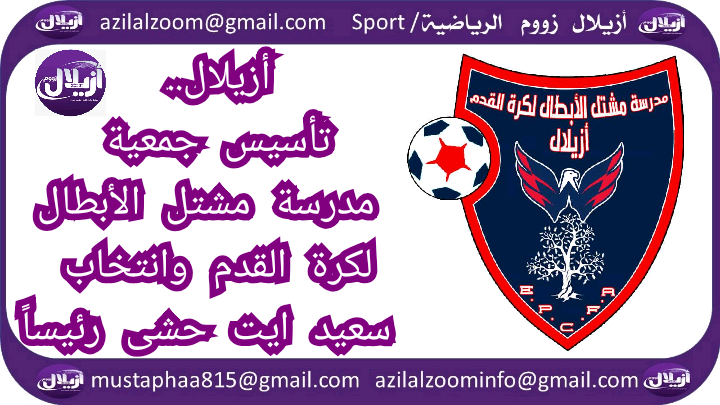 تعزز المشهد الجمعوي الرياضي بمدينة ازيلال ، بميلاد جمعية مدرسة مشتل الأبطال لكرة القدم بأزيلال ، والتي تم تأسيسها خلال الجمع العام التأسيسي الذي احتضنه مركز تقوية قدرات الشباب بأزيلال ،بتاريخ 12 نونبر 2020 ، وجاءت تشكيلة مكتبها المسير على الشكل التالي :
