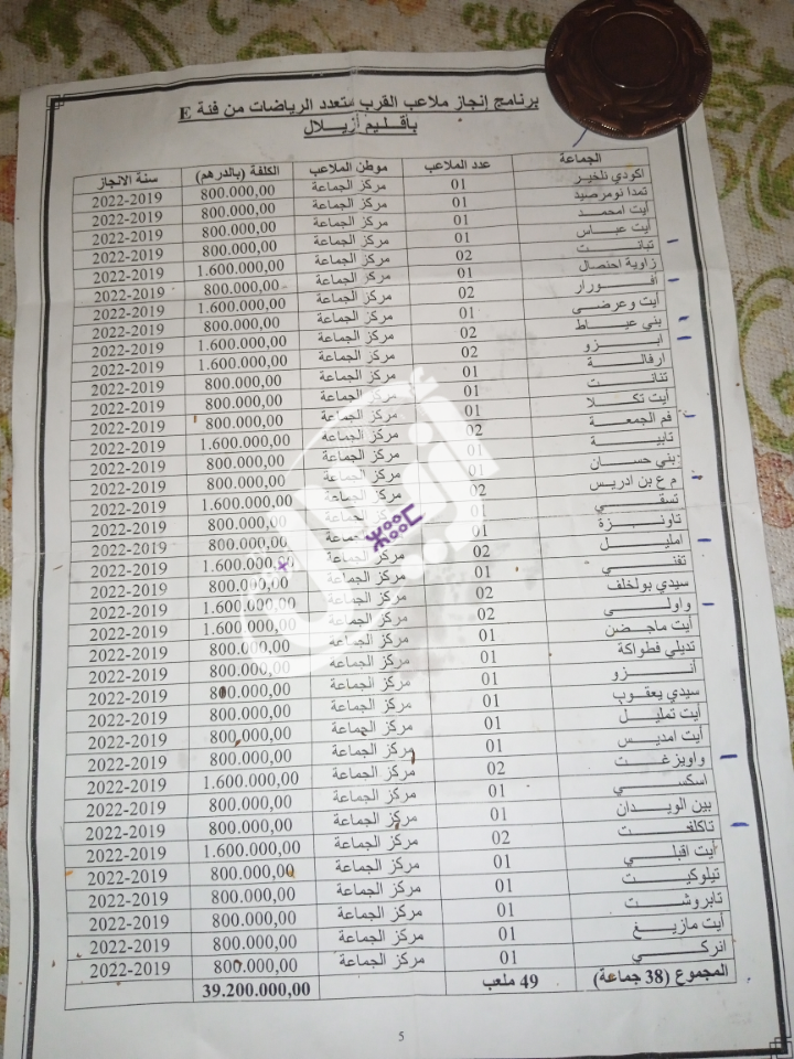 وتم توزيع الملاعب على 38 جماعة بإقليم أزيلال حسب اللائحة أسفله :