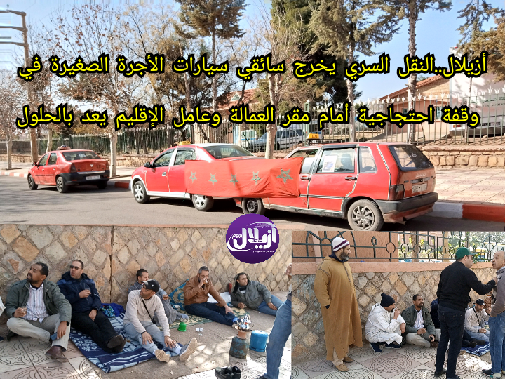 نظم سائقو سيارات الأجرة الصغيرة بمدينة أزيلال ، زوال اليوم الثلاثاء فاتح فبراير ، وقفة احتجاجية أمام مقر عمالة الإقليم ،مطالبين بتدخل السلطات لايجاد حل لمشكلة ما اسموه ب" النقل السري" لأصحاب سيارات نقل البضائع .