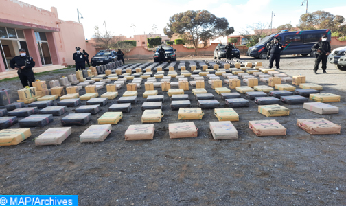وأوضح بلاغ للمديرية العامة للأمن الوطني أنه تم إخضاع الشاحنة المذكورة لتفتيش دقيق بواسطة الكلاب المدربة، أسفر عن العثور بداخلها على طنين و79 كيلوغراما من مخدر الشيرا مخبأة وملفوفة ضمن علب لمنتجات غذائية.