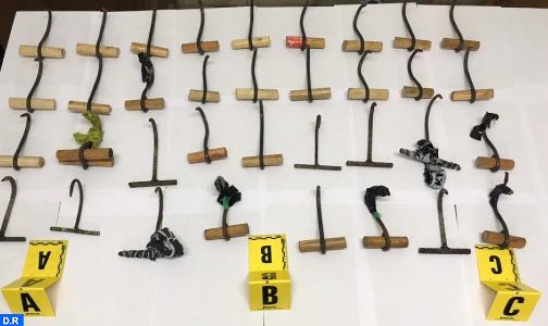 وأوضح بلاغ للمديرية العامة للأمن الوطني أنه تم توقيف المشتبه فيهم على مستوى نقطة للمراقبة المرورية بمدخل مدينة طنجة فور وصولهم على متن حافلة للنقل العمومي، وهم في حالة تلبس بحيازة 36 أداة حديدية مصنوعة بشكل تقليدي ويشتبه في استخدامها في عمليات الهجرة الجماعية عن طريق التسلق.